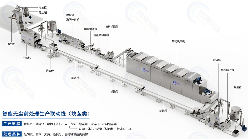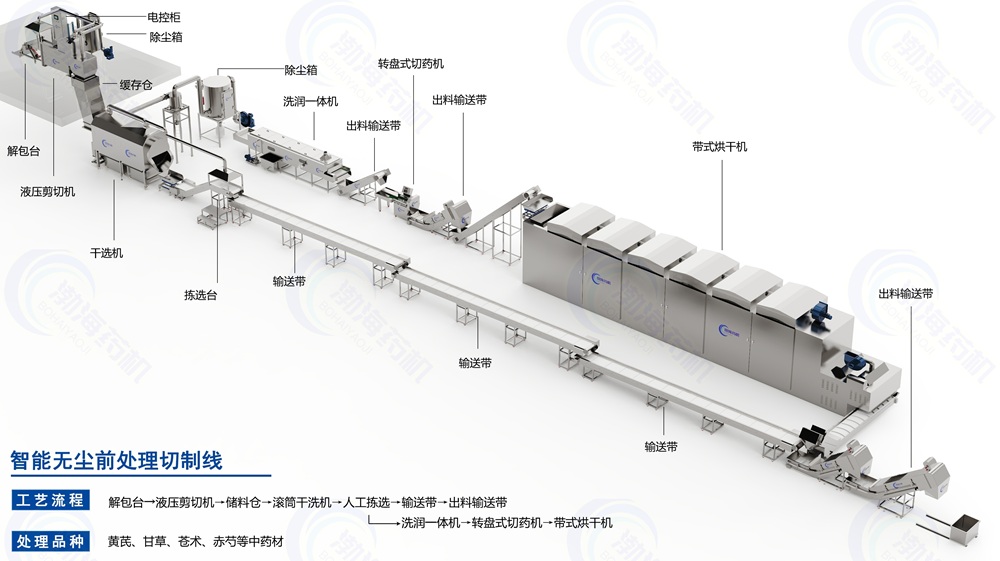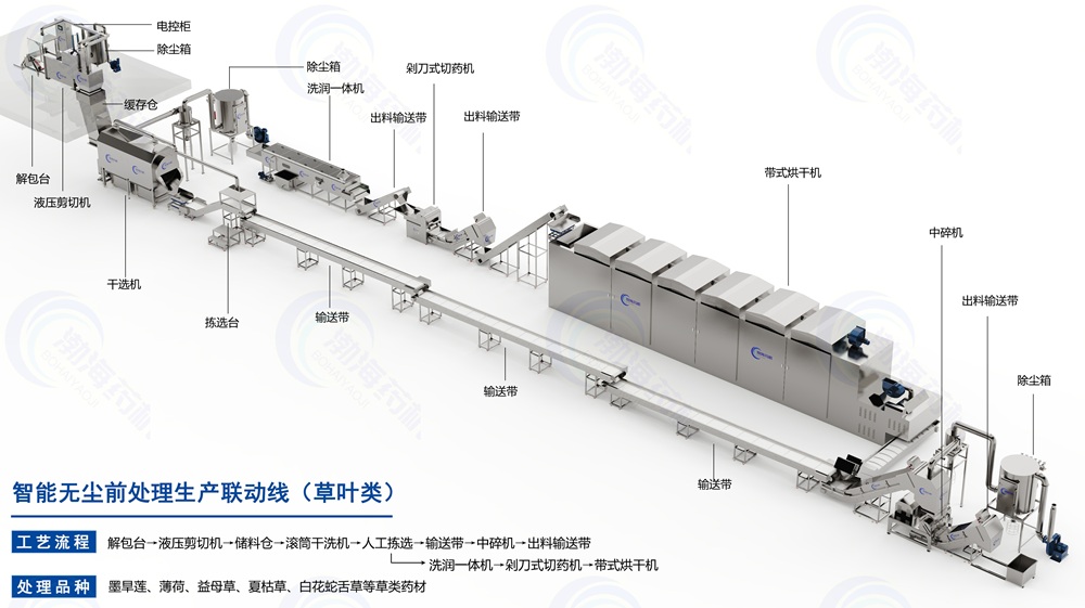 智能無塵前處理生產(chǎn)聯(lián)動(dòng)線(草葉類)